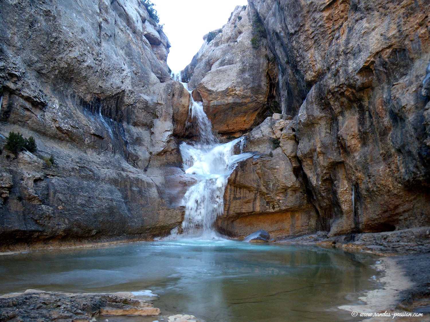 Pour effectuer cette magnifique descente du canyon du Mascún supérieur (que nous avons déjà faite il y a quelques années), nous choisissons l’accès par le nord et les villages de Las Bellostas et de San Hipolito. Au départ de l’auberge de chez Pierre, après un parcours chaotique sur une piste défoncée par les pluies du printemps et après une heure de marche environ, nous voici au sommet du Saltador. C’est exceptionnel pour la saison ; nous sommes le 10 juillet et après les fortes pluies du mois de juin, la rivière offre un débit très correct. Le soleil brille et les conditions sont optimales.