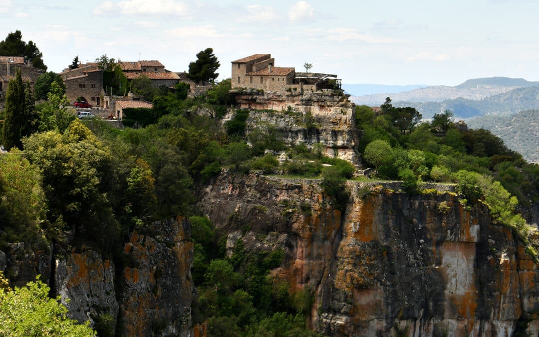 Nous traversons le Riu de Montsant sur la passerelle de Sant Bertomeu. Le sentier monte maintenant dans la forêt, en s’enfonçant dans le Congost de Fragerau. Nous atteignons les vestiges de l’ermitage sous roche où le moine cistercien, frère Guerau, s’était retiré durant la seconde moitié du XIIᵉ siècle. Sant Bartomeu est l’ermitage le plus ancien de la Serra de Montsant.
