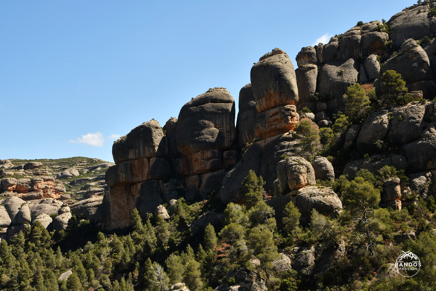 La grande beauté du canyon, formé par le Riu de Montsant, fait de cette randonnée une des plus belles du Parc Naturel de la Serra de Montsant. Notre chemin nous permet d’admirer, un paysage naturel époustouflant, composée de roches imposantes, aux formes arrondies, qui ont reçu des noms populaires comme les Trois Jurats, la Tête de Turc ou la Cadira.