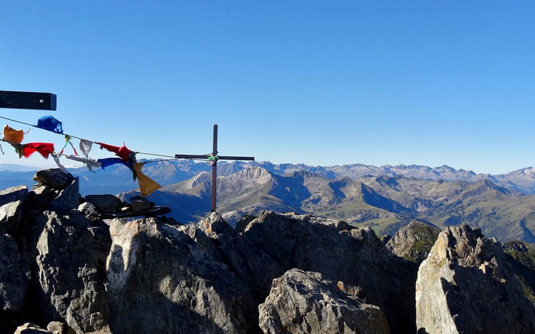 Vers 1840 mètres, lorsque nous passons en contrebas du Pla de Madame, nous coupons droit dans la pente pour rejoindre la crête herbeuse un peu à l’ouest du Pla de Madame. Nous filons alors plein ouest jusqu’au pic de Boucarle (1984 m). La vue sur les hauts massifs du Vicdessos est magnifique.