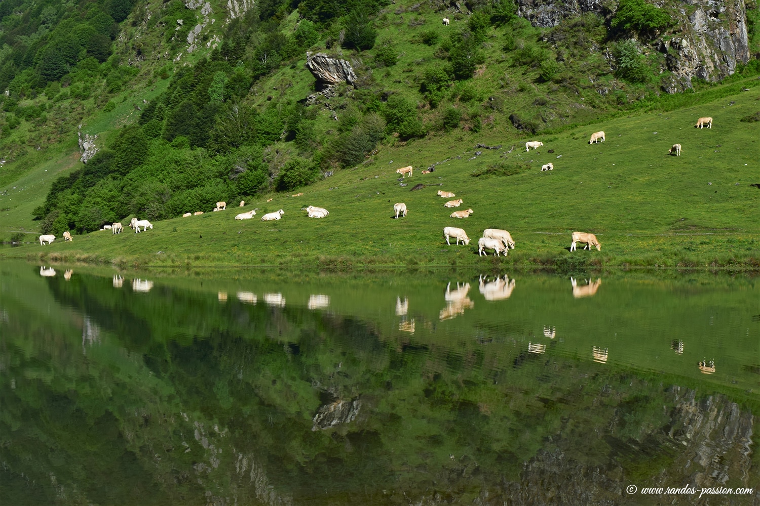 Ce ne sont pas les fées de la légende du lac qui se baignent ce matin, mais des vaches qui se rafraichissent…