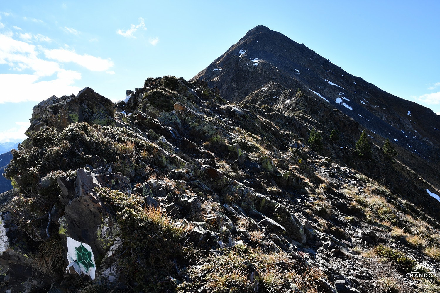 La descente commence par une crête rocheuse facile avant d’arriver à une zone plus délitée, où il faut prendre son temps. Autrement dit, mieux vaut éviter les excès de confiance sous peine d’un atterrissage express peu confortable. Le Col de Jetas (2 485 m) est un vaste replat marqué par des cairns, où l’on retrouve un sentier plus confortable. Depuis là, une courte montée, mais raide nous mène au Montarrouyet (2 473 m). Cette crête panoramique est un pur plaisir à parcourir, offrant une vue imprenable sur les sommets voisins et une magnifique perspective sur la vallée qui plonge vers Aulon. Ses reliefs tourmentés, sculptés par les glaciers d’autrefois, racontent une histoire millénaire, figée dans la roche et façonnée par le temps.