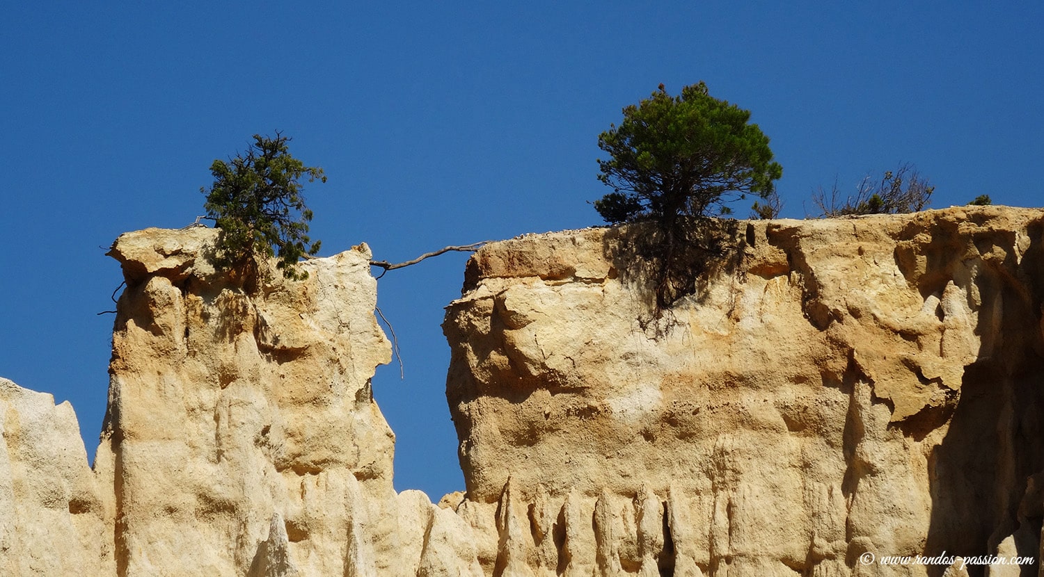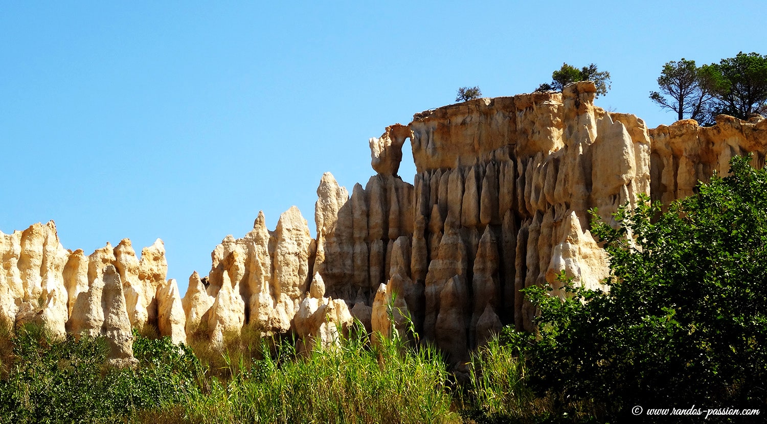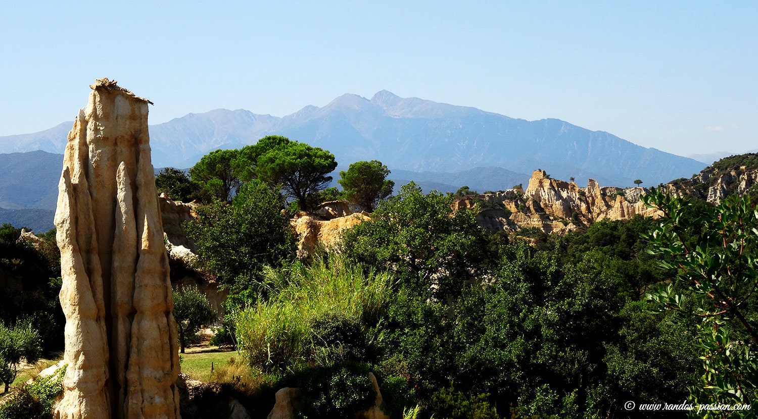 Après environ 15 minutes de marche, le long de ce sentier aux senteurs méditerranéennes, nous arrivons sur le site, où les fameuses « demoiselles coiffées » des Orgues d’Ille-sur-Têt commencent doucement à pointer le bout de leur nez…