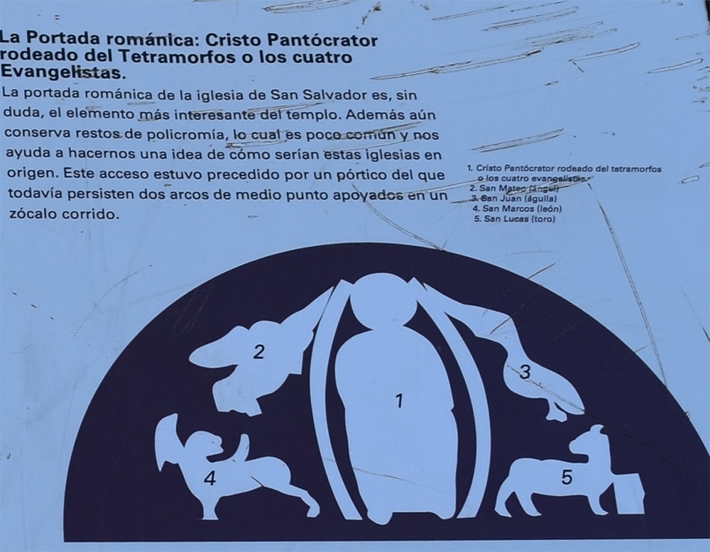 Le front roman d’Agüero représente le Christ Pantocrator entouré des quatre évangélistes : le lion pour Marc, le taureau pour Luc, l’ange pour Matthieu et l’aigle pour Jean.
